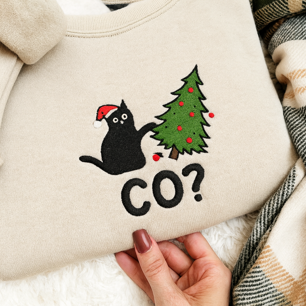 Bluza / Koszulka z HAFTEM – „CO?” KOTEK Z CHOINKĄ