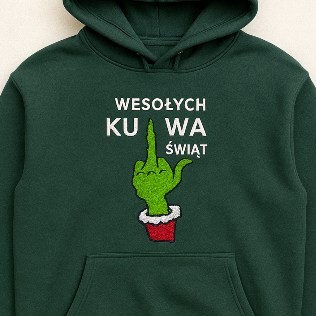 Bluza / Koszulka z HAFTEM – GRINCH „Wesołych KUWA Świąt”