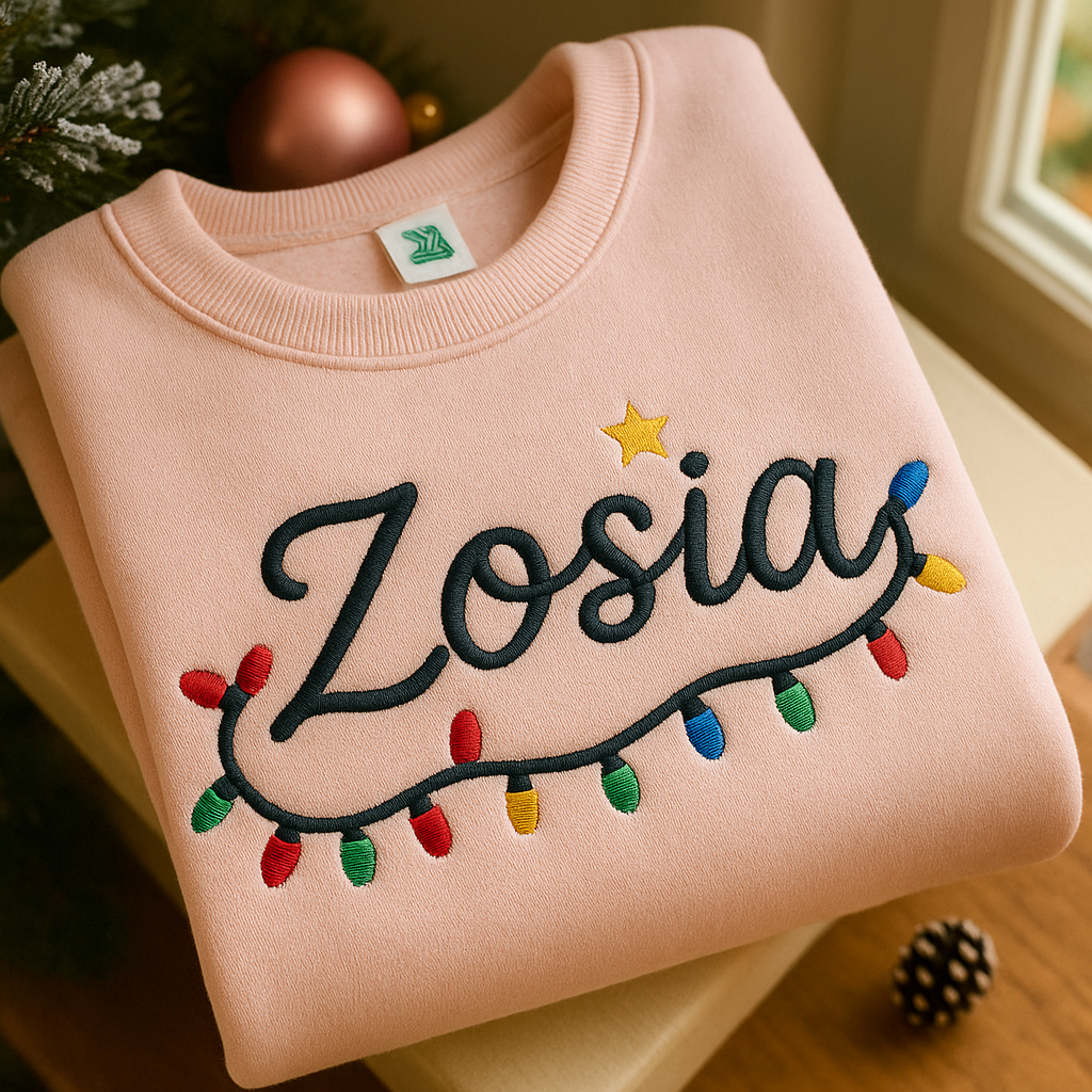 Bluza / Koszulka z HAFTEM – „IMIE” ze świątecznymi lampkami